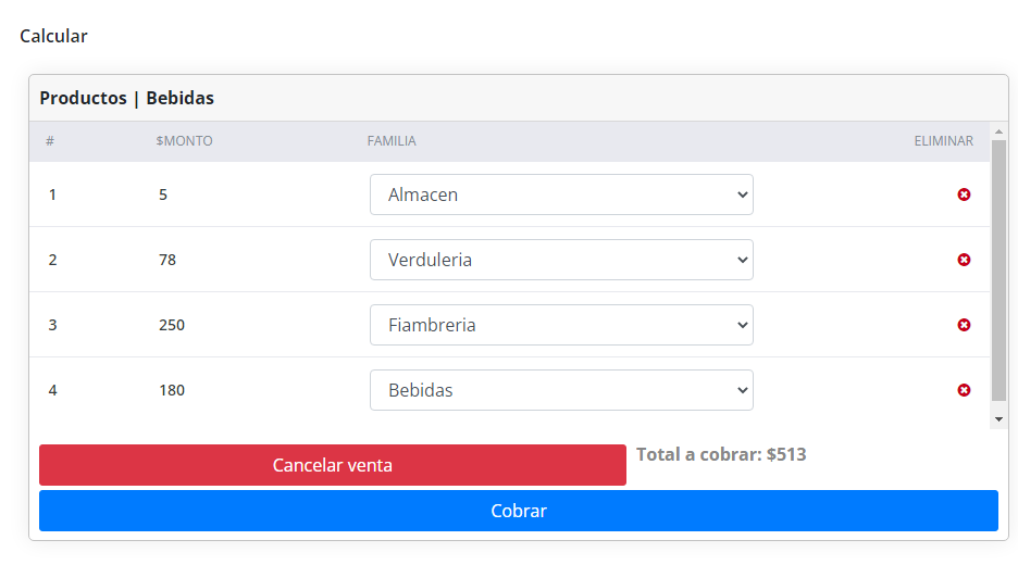 Te permitimos realizar la carga de todos tus productos, manejar precios y stock de los mismo de manera facil e intuitiva. Ademas te damos la posibilidad de cobrar con lectora de código de barras o de manera totalmente facil mediante familias facilmente creables y editables.